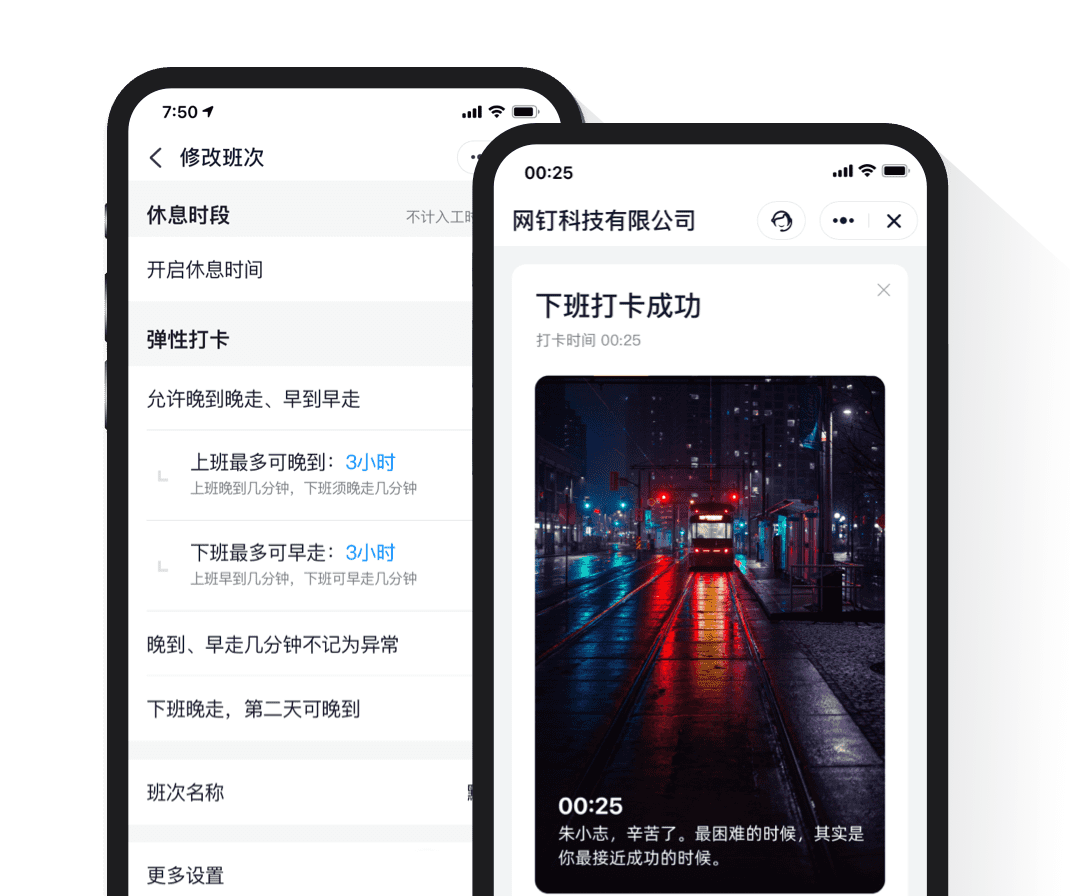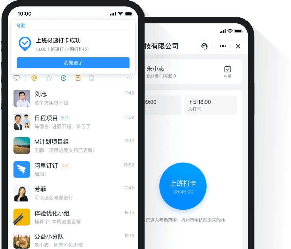 員工人性化考勤上班時間到公司,打開釘釘自動打卡,再也不用擔心忘打卡了。